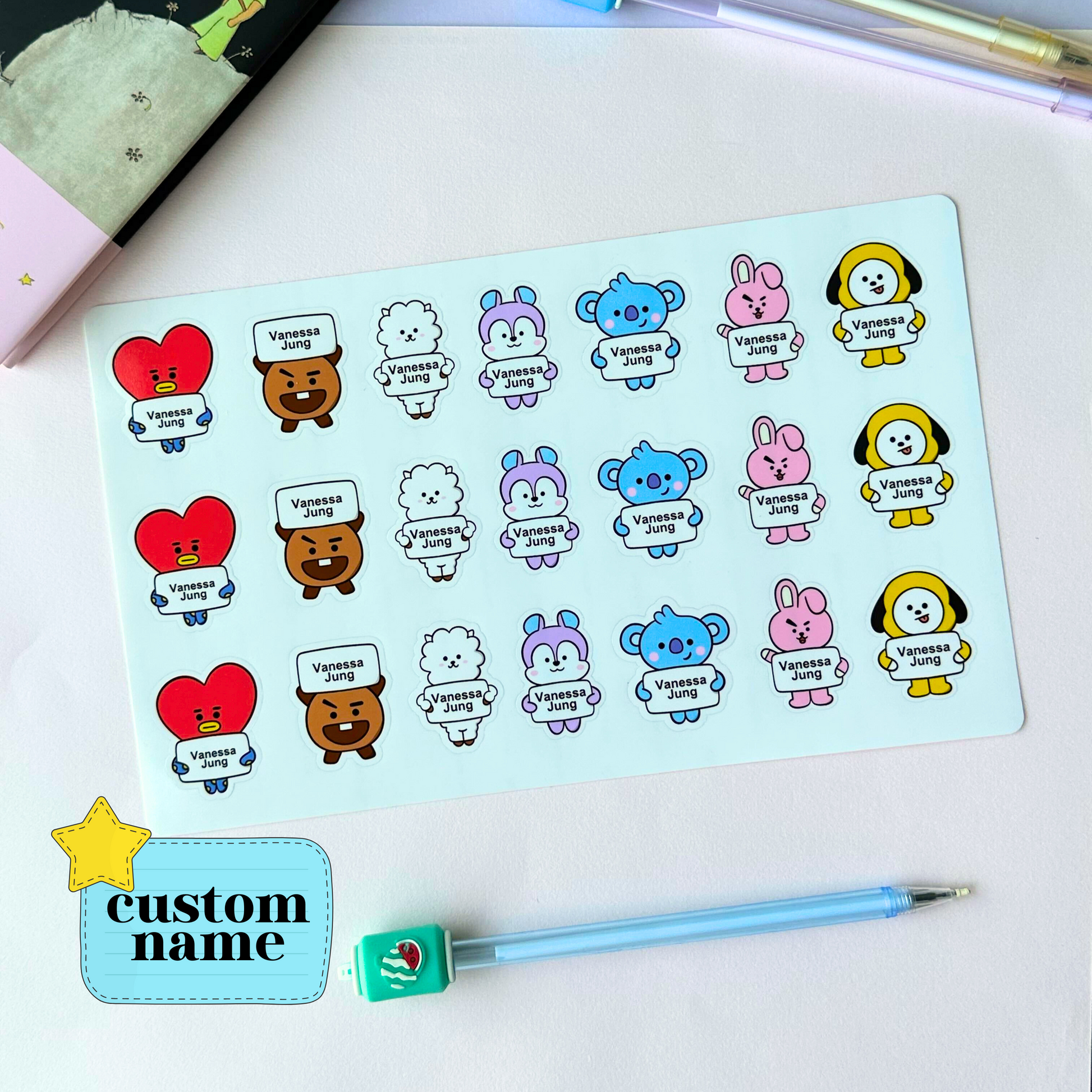 Custom BT21 Name Label Waterproof Sticker, Set of 21 Vinyl Waterproof Stickers